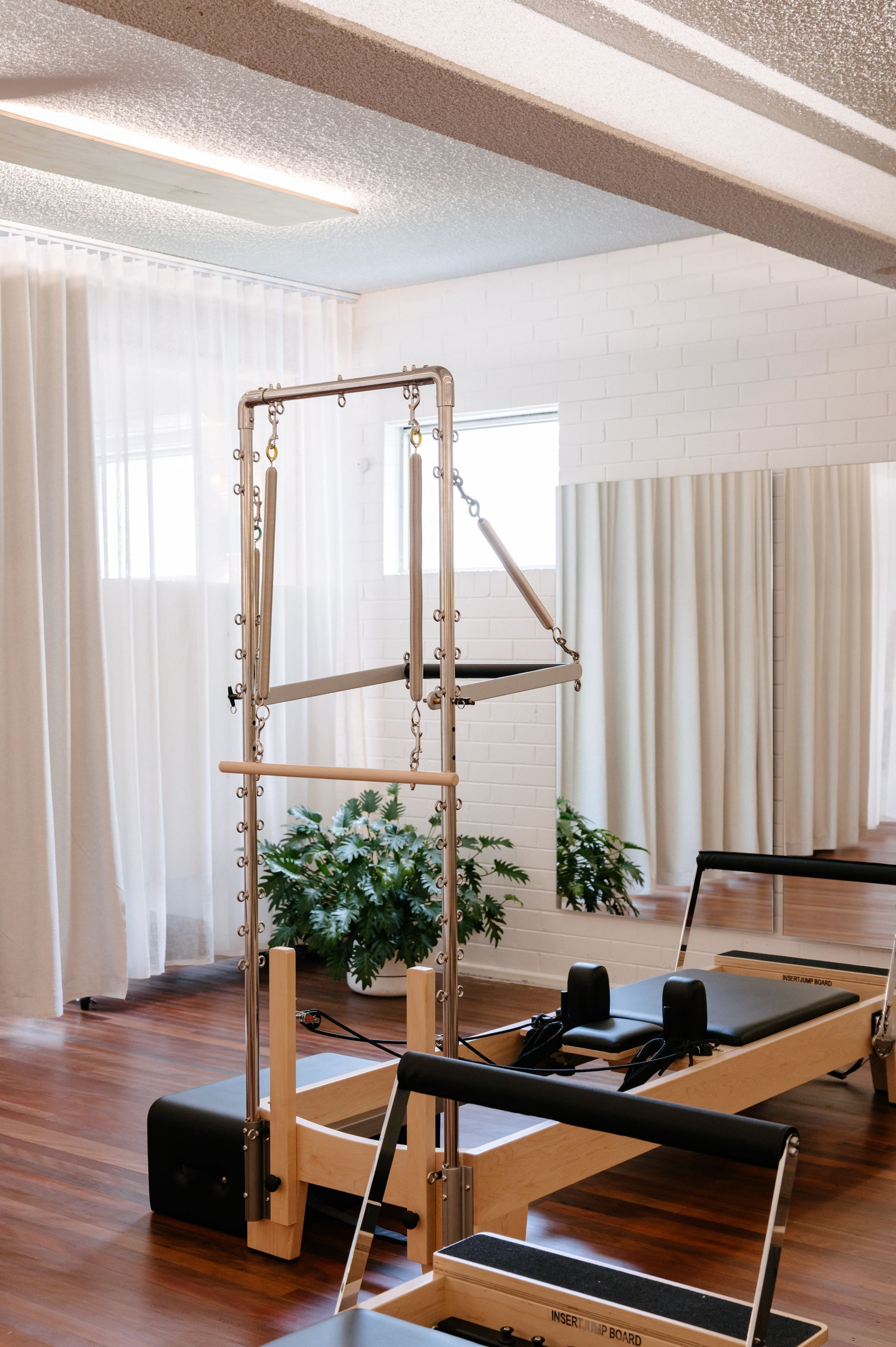 The Trapeze Table (also known as the Cadillac) is one of the most iconic and versatile pieces of Pilates equipment - featured in our Studio classes.